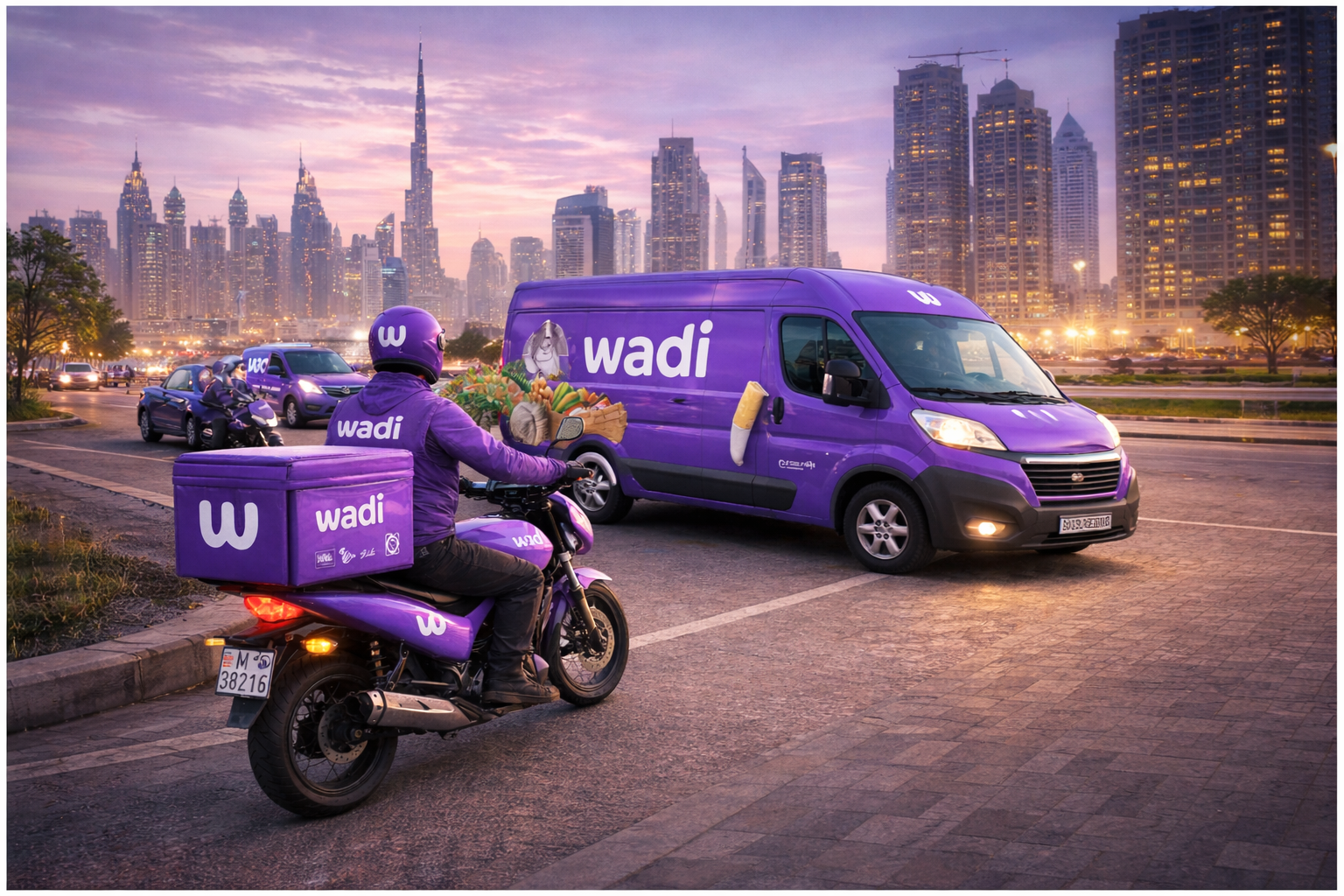 Our delivery motorcycles and cars wrapped with the Wadi logo reach every corner of the UAE daily.